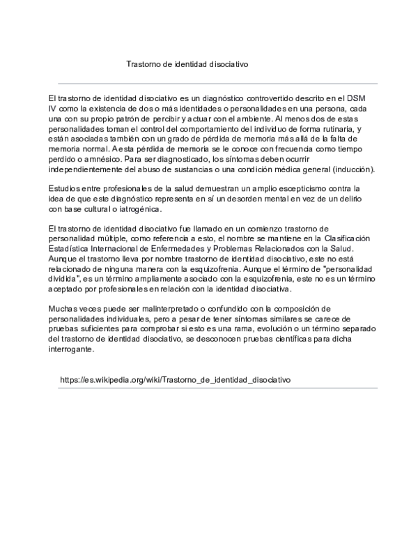 Doc Trastorno De Identidad Disociativo O Multiple Eduardo Ruiz Academia Edu