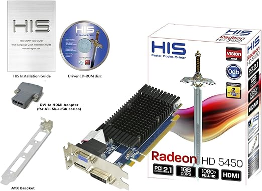 Amazon Com His Radeon Hd 5450 Silence 1 Gb 64bit Ddr3 Hdmi Dl Dvi Hdcp Vga Pci Express 2 1 16x Video Card Retail Rohs H545h1g Electronics
